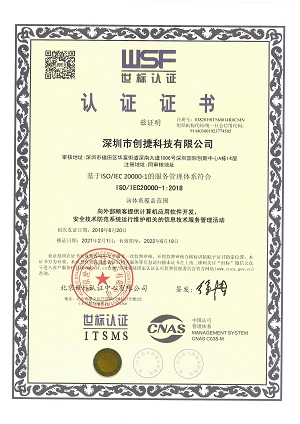• ISO20000 信息技術服務管理(lǐ)體系認證
